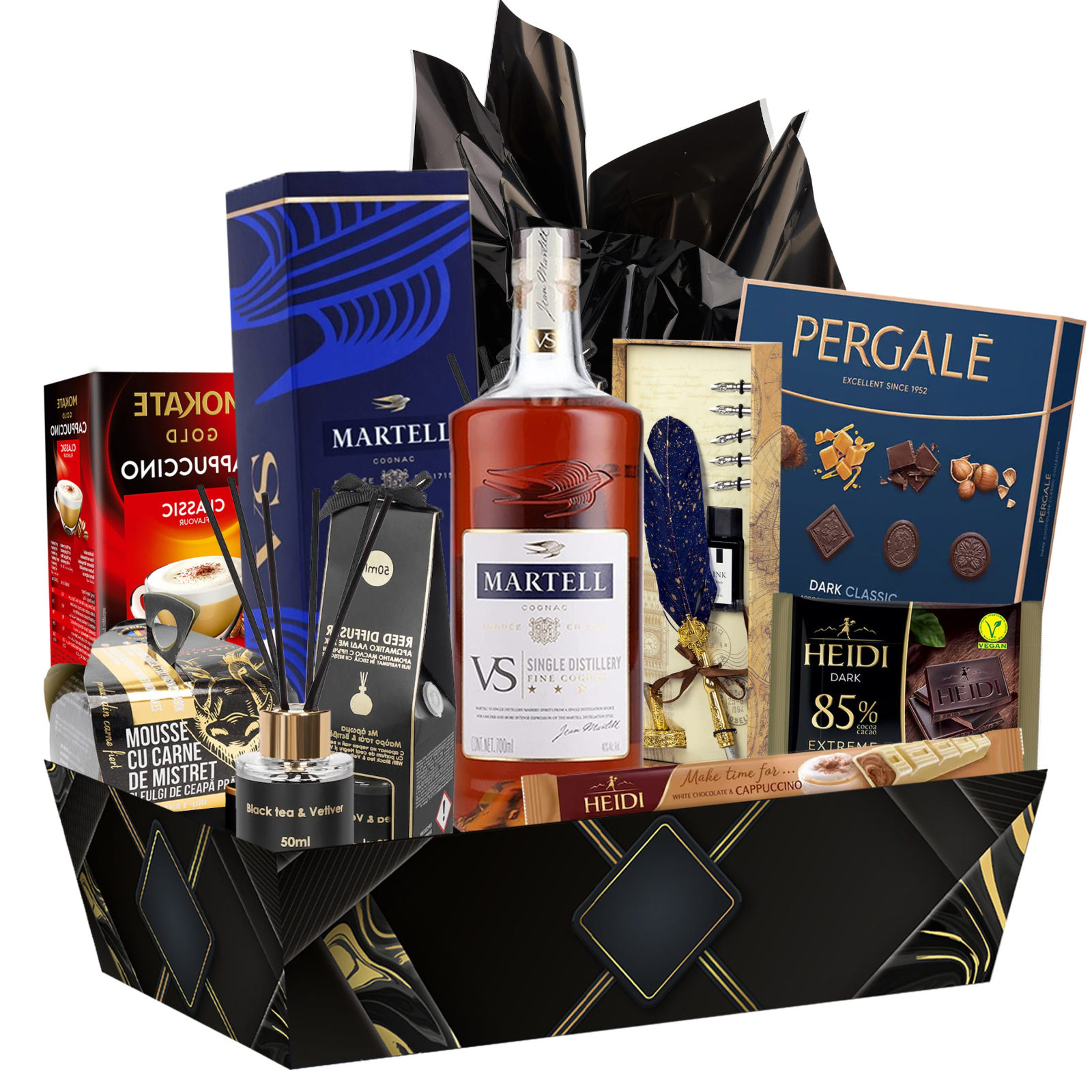 Cutie Cadou Lumiere este un cadou sofisticat creat pentru a impresiona prin eleganță și rafinament. Combinația dintre cognacul premium Martell VS, delicii dulci, specialități gourmet și accesorii elegante transformă acest set într-o alegere ideală pentru ocazii speciale, sărbători sau cadouri business.